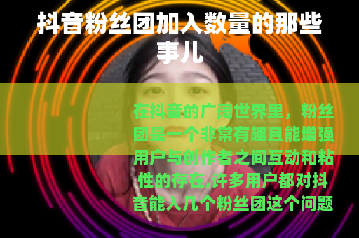 在抖音的广阔世界里,粉丝团是一个非常有趣且能增强用户与创作者之间互动和粘性的存在,许多用户都对抖音能入几个粉丝团这个问题充满了好奇。