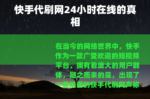 在当今的网络世界中,快手作为一款广受欢迎的短视频平台,拥有着庞大的用户群体,随之而来的是,出现了一些所谓的快手代刷网声称能够24小时在线提供服务,这引发了众多用户的好奇与疑问:快手代刷网24小时在线是真的吗?