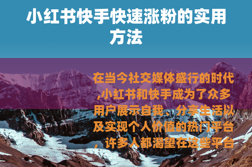 在当今社交媒体盛行的时代,小红书和快手成为了众多用户展示自我、分享生活以及实现个人价值的热门平台,许多人都渴望在这些平台上快速涨粉,从而获得更多的关注和机会,以下是一些关于小红书和快手快速涨粉的有效途径。