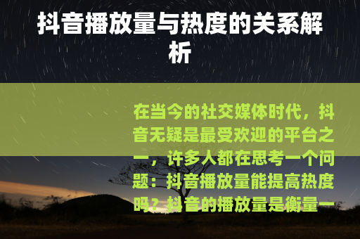 在当今的社交媒体时代,抖音无疑是最受欢迎的平台之一,许多人都在思考一个问题:抖音播放量能提高热度吗?
