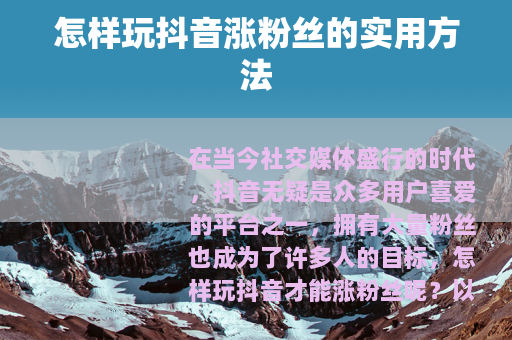 在当今社交媒体盛行的时代,抖音无疑是众多用户喜爱的平台之一,拥有大量粉丝也成为了许多人的目标,怎样玩抖音才能涨粉丝呢?以下是一些实用的方法。