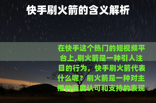 在快手这个热门的短视频平台上,刷火箭是一种引人注目的行为,快手刷火箭代表什么呢?