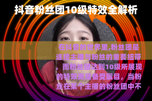 在抖音的世界里,粉丝团是连接主播与粉丝的重要纽带,而粉丝团达到10级所展现的特效更是备受瞩目,当粉丝在某个主播的粉丝团中不断活跃,积累经验值,最终升至10级时,会解锁一系列独特而炫酷的特效。