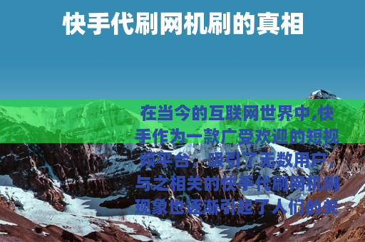 在当今的互联网世界中,快手作为一款广受欢迎的短视频平台,吸引了无数用户,与之相关的快手代刷网机刷现象也逐渐引起了人们的关注。
