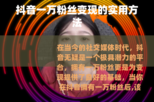 在当今的社交媒体时代,抖音无疑是一个极具潜力的平台,拥有一万粉丝更是为变现提供了良好的基础,当你在抖音拥有一万粉丝后,该如何实现变现呢?