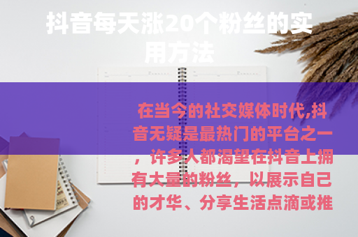 在当今的社交媒体时代,抖音无疑是最热门的平台之一,许多人都渴望在抖音上拥有大量的粉丝,以展示自己的才华、分享生活点滴或推广自己的产品与服务,就来给大家分享一些能让你在抖音上每天涨20个粉丝的有效方法。