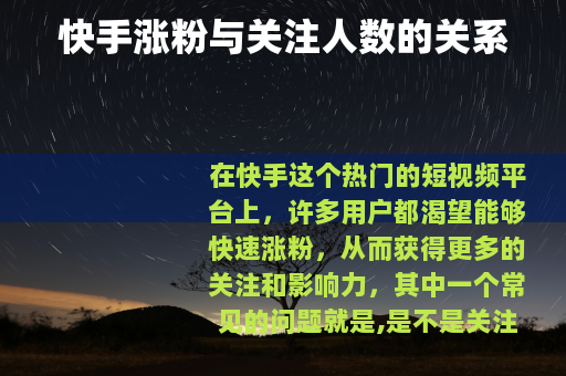 在快手这个热门的短视频平台上,许多用户都渴望能够快速涨粉,从而获得更多的关注和影响力,其中一个常见的问题就是,是不是关注多少人就可以涨粉呢?