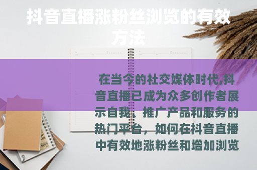 在当今的社交媒体时代,抖音直播已成为众多创作者展示自我、推广产品和服务的热门平台,如何在抖音直播中有效地涨粉丝和增加浏览量呢?以下是一些实用的方法。