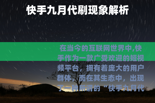 在当今的互联网世界中,快手作为一款广受欢迎的短视频平台,拥有着庞大的用户群体,而在其生态中,出现了一种所谓的“快手九月代刷”现象。