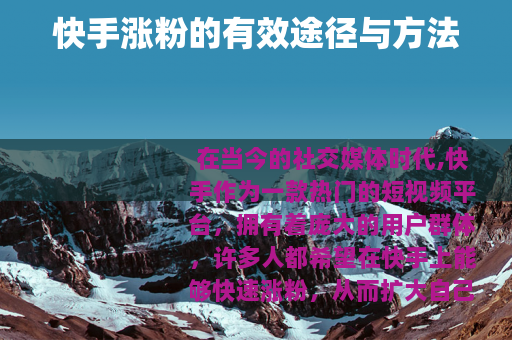 在当今的社交媒体时代,快手作为一款热门的短视频平台,拥有着庞大的用户群体,许多人都希望在快手上能够快速涨粉,从而扩大自己的影响力和实现各种目标,谁知道快手涨粉的有效方式呢?