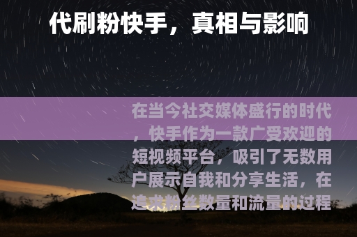 在当今社交媒体盛行的时代,快手作为一款广受欢迎的短视频平台,吸引了无数用户展示自我和分享生活,在追求粉丝数量和流量的过程中,一种名为“代刷粉快手”的现象逐渐兴起,引发了诸多讨论。