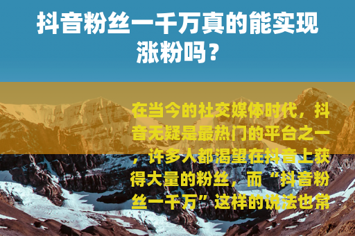 在当今的社交媒体时代,抖音无疑是最热门的平台之一,许多人都渴望在抖音上获得大量的粉丝,而“抖音粉丝一千万”这样的说法也常常引起大家的关注和讨论,抖音粉丝一千万真的能涨粉吗?
