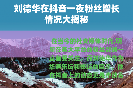 在当今的社交媒体时代,明星在各大平台的粉丝数据一直备受关注,而刘德华作为华语乐坛和影坛的巨星,他在抖音上的动态更是牵动着无数粉丝的心,刘德华在抖音一夜究竟涨了多少粉丝呢?