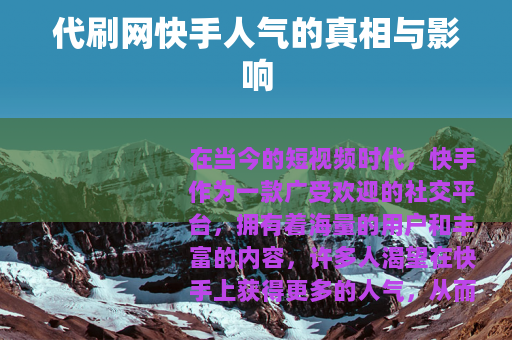在当今的短视频时代,快手作为一款广受欢迎的社交平台,拥有着海量的用户和丰富的内容,许多人渴望在快手上获得更多的人气,从而让自己的作品被更多人看到,于是代刷网快手人气的现象应运而生。