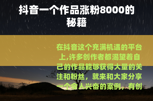 在抖音这个充满机遇的平台上,许多创作者都渴望着自己的作品能够获得大量的关注和粉丝,就来和大家分享一个令人兴奋的案例,有创作者凭借一个作品就涨了8000粉丝。