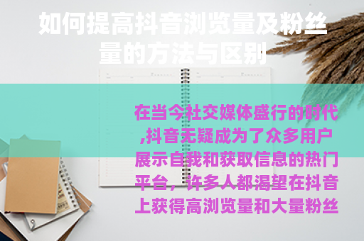 在当今社交媒体盛行的时代,抖音无疑成为了众多用户展示自我和获取信息的热门平台,许多人都渴望在抖音上获得高浏览量和大量粉丝,以实现自己的社交价值和商业目标,怎么提高抖音浏览量和粉丝量呢?它们之间又有哪些区别呢?