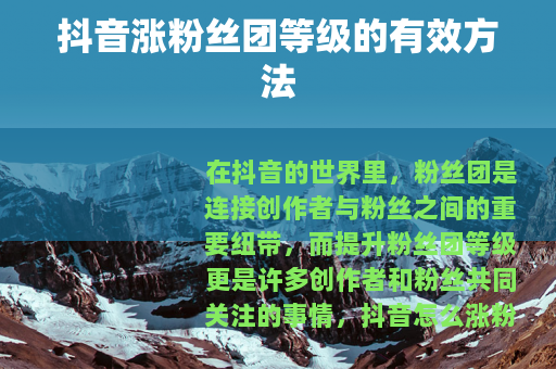 想要在抖音上涨粉丝团等级,需要不断努力和创新,通过多种方式提高粉丝的活跃度和忠诚度,只要坚持不懈地做好以上几点,相信你的粉丝团等级一定会逐步提升,在抖音的创作之路上取得更好的成绩。