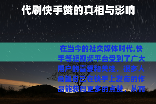 在当今的社交媒体时代,快手等短视频平台受到了广大用户的喜爱和关注,很多人希望自己在快手上发布的作品能获得更多的点赞,从而获得更多的流量和曝光,在这种需求下,一种所谓的“代刷快手赞”的服务悄然兴起。