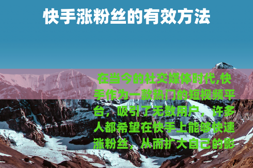 在当今的社交媒体时代,快手作为一款热门的短视频平台,吸引了无数用户,许多人都希望在快手上能够快速涨粉丝,从而扩大自己的影响力和社交圈,以下是一些关于快手涨粉丝的实用方法。
