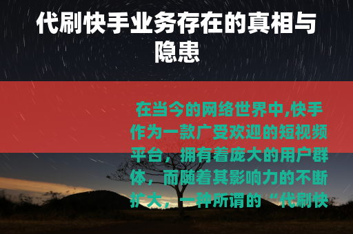 许多人可能会被这种业务所吸引,认为通过代刷可以快速提升自己在快手上的人气和影响力,这种代刷行为背后却隐藏着诸多问题。