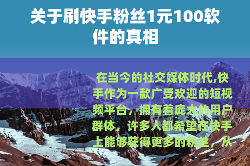 在当今的社交媒体时代,快手作为一款广受欢迎的短视频平台,拥有着庞大的用户群体,许多人都希望在快手上能够获得更多的粉丝,从而提升自己的影响力和知名度,市场上出现了各种各样声称可以快速增加快手粉丝的软件,其中就有所谓的刷快手粉丝1元100的软件。