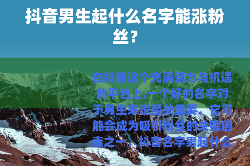 在抖音这个充满活力与机遇的平台上,一个好的名字对于男生来说至关重要,它可能会成为吸引粉丝的关键因素之一,抖音名字男起什么能涨粉丝呢?