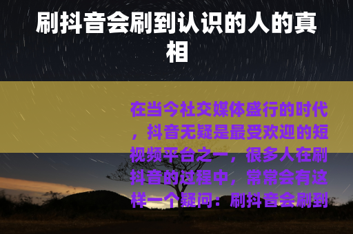 在当今社交媒体盛行的时代,抖音无疑是最受欢迎的短视频平台之一,很多人在刷抖音的过程中,常常会有这样一个疑问:刷抖音会刷到认识的人吗?