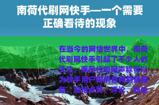 在当今的网络世界中,南荷代刷网快手引起了不少人的关注,南荷代刷网声称可以为快手用户提供各种刷量服务,包括点赞、评论、粉丝增长等。