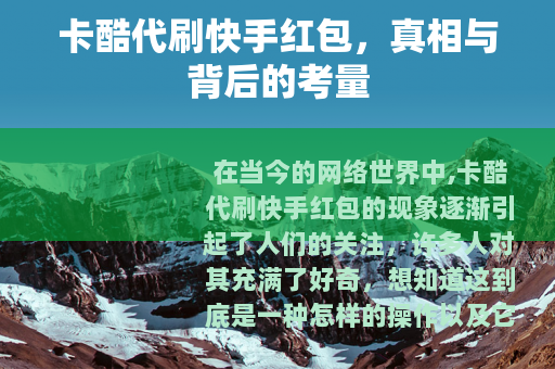 在当今的网络世界中,卡酷代刷快手红包的现象逐渐引起了人们的关注,许多人对其充满了好奇,想知道这到底是一种怎样的操作以及它能带来什么。
