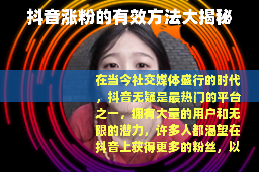 希望以上这些方法能够帮助你在抖音上实现涨粉的目标,让你的抖音之旅更加精彩!