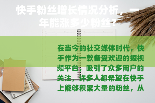 在当今的社交媒体时代,快手作为一款备受欢迎的短视频平台,吸引了众多用户的关注,许多人都希望在快手上能够积累大量的粉丝,从而实现自己的社交和商业价值,快手一年到底能涨多少粉丝呢?