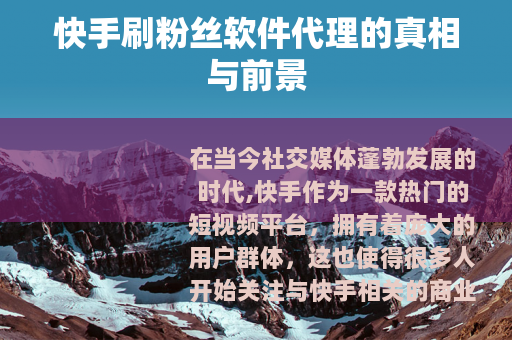 在当今社交媒体蓬勃发展的时代,快手作为一款热门的短视频平台,拥有着庞大的用户群体,这也使得很多人开始关注与快手相关的商业机会,其中快手刷粉丝软件代理就是一个备受瞩目的领域。