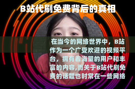 在当今的网络世界中,B站作为一个广受欢迎的视频平台,拥有着海量的用户和丰富的内容,而关于B站代刷免费的话题也时常在一些网络角落中被提及。
