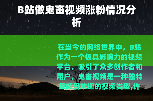 在当今的网络世界中,B站作为一个极具影响力的视频平台,吸引了众多创作者和用户,鬼畜视频是一种独特且颇受欢迎的视频类型,许多人都想知道在B站做鬼畜视频涨粉快吗?