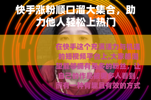通过这些快手帮别人涨粉的顺口溜,我们可以更好地理解和运用一些涨粉的技巧和方法,无论是对于自己的快手账号,还是帮助身边的朋友在快手上获得更多的关注,都有着积极的作用,希望大家都能在快手这个大舞台上,凭借着这些有趣的顺口溜和自己的努力,收获满满的粉丝,让自己的快手之旅更加精彩。
