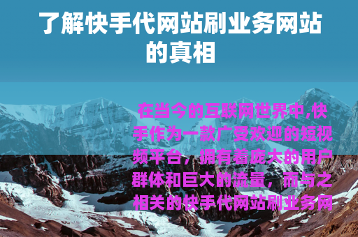 在当今的互联网世界中,快手作为一款广受欢迎的短视频平台,拥有着庞大的用户群体和巨大的流量,而与之相关的快手代网站刷业务网站也逐渐进入了人们的视野。