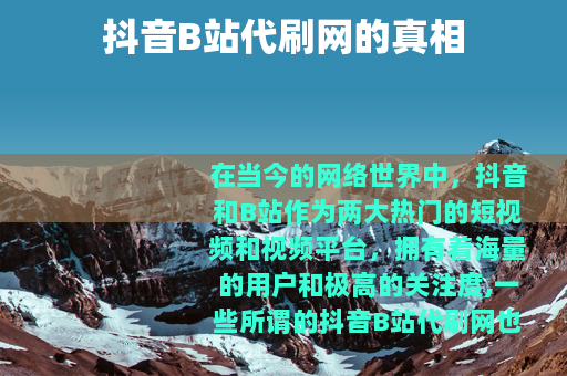 在当今的网络世界中,抖音和B站作为两大热门的短视频和视频平台,拥有着海量的用户和极高的关注度,一些所谓的抖音B站代刷网也悄然出现。