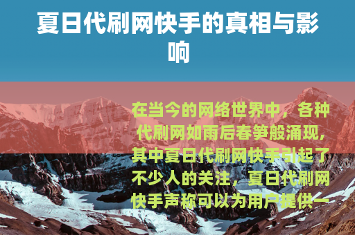 在当今的网络世界中,各种代刷网如雨后春笋般涌现,其中夏日代刷网快手引起了不少人的关注。