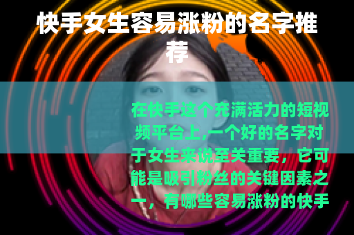 在快手这个充满活力的短视频平台上,一个好的名字对于女生来说至关重要,它可能是吸引粉丝的关键因素之一,有哪些容易涨粉的快手名字适合女生呢?