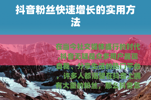 在当今社交媒体盛行的时代,抖音无疑是众多用户展现自我、分享生活的热门平台,许多人都渴望在抖音上拥有大量的粉丝,那么抖音怎样粉丝涨得快呢?以下是一些实用的方法。