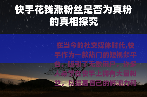在当今的社交媒体时代,快手作为一款热门的短视频平台,吸引了无数用户,许多人希望在快手上拥有大量粉丝,以提高自己的影响力和知名度,就出现了花钱涨粉丝的现象,快手花钱涨粉丝得到的到底是不是真粉呢?