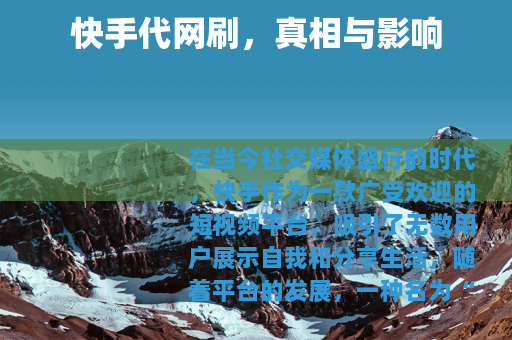 在当今社交媒体盛行的时代,快手作为一款广受欢迎的短视频平台,吸引了无数用户展示自我和分享生活,随着平台的发展,一种名为“快手代网刷”的现象也悄然兴起,引起了人们的广泛关注。