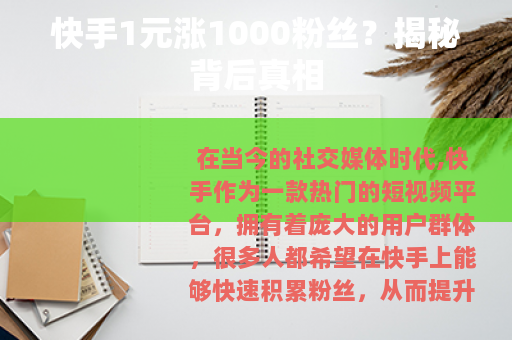 在当今的社交媒体时代,快手作为一款热门的短视频平台,拥有着庞大的用户群体,很多人都希望在快手上能够快速积累粉丝,从而提升自己的影响力和知名度,而“快手1元涨1000粉丝”这样的说法也在网络上悄然兴起,吸引了众多人的目光。