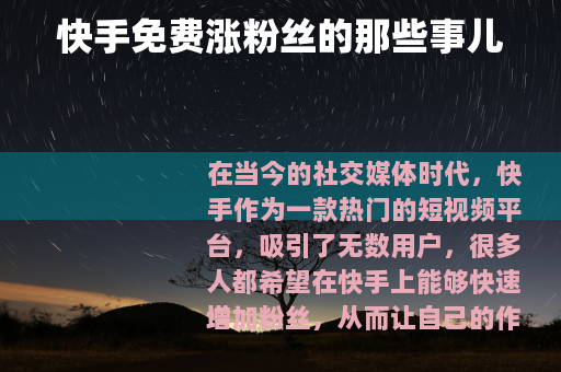在当今的社交媒体时代,快手作为一款热门的短视频平台,吸引了无数用户,很多人都希望在快手上能够快速增加粉丝,从而让自己的作品获得更多的关注和认可,一些所谓的“快手免费涨1000粉丝网站”便应运而生。