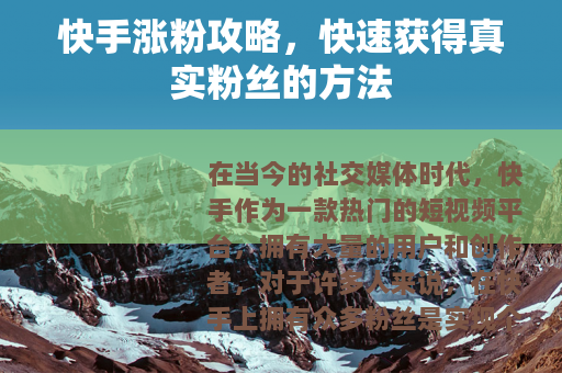 在当今的社交媒体时代,快手作为一款热门的短视频平台,拥有大量的用户和创作者,对于许多人来说,在快手上拥有众多粉丝是实现个人影响力和商业价值的重要途径,如何在快手上快速涨粉呢?以下是一些实用的方法。