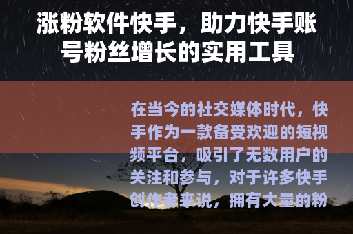 在当今的社交媒体时代,快手作为一款备受欢迎的短视频平台,吸引了无数用户的关注和参与,对于许多快手创作者来说,拥有大量的粉丝是他们追求的目标之一,而涨粉软件快手的出现,为他们提供了一种新的途径和可能。
