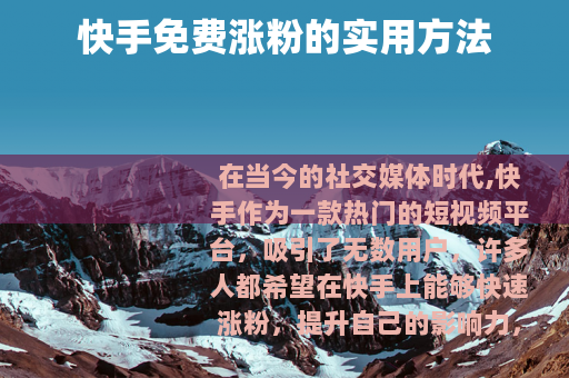 在当今的社交媒体时代,快手作为一款热门的短视频平台,吸引了无数用户,许多人都希望在快手上能够快速涨粉,提升自己的影响力,我们就来探讨一些快手免费涨粉的有效途径。 是关键,要想吸引粉丝,就必须提供有价值、有趣、独特的短视频内容,无论是搞笑段子、美食制作教程、生活小窍门还是才艺表演,都要确保内容能够引起观众的共鸣和兴趣,在创作内容时,要注重选题的新颖性和实用性,让用户在观看后能够有所收获。