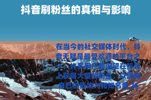 在当今的社交媒体时代,抖音无疑是最受欢迎的平台之一,许多用户都渴望在抖音上获得大量的粉丝,以增加自己的影响力和知名度,抖音刷粉丝的现象便应运而生。