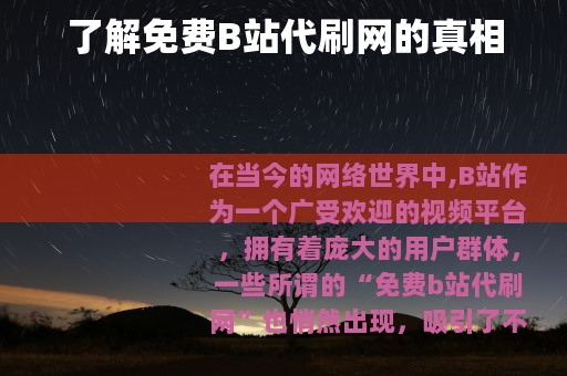 在当今的网络世界中,B站作为一个广受欢迎的视频平台,拥有着庞大的用户群体,一些所谓的“免费b站代刷网”也悄然出现,吸引了不少人的关注。