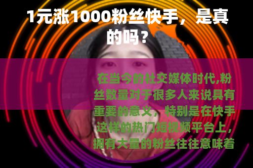 在当今的社交媒体时代,粉丝数量对于很多人来说具有重要的意义,特别是在快手这样的热门短视频平台上,拥有大量的粉丝往往意味着更多的关注、更高的影响力以及可能带来的各种商业机会,不少人都在寻找快速增加粉丝的方法,而“1元涨1000粉丝快手”这样的宣传口号也应运而生,吸引了众多人的目光。